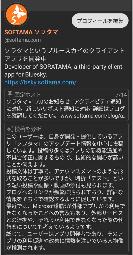 参考までに@softama.comのアカウントを分析した結果を添付します。